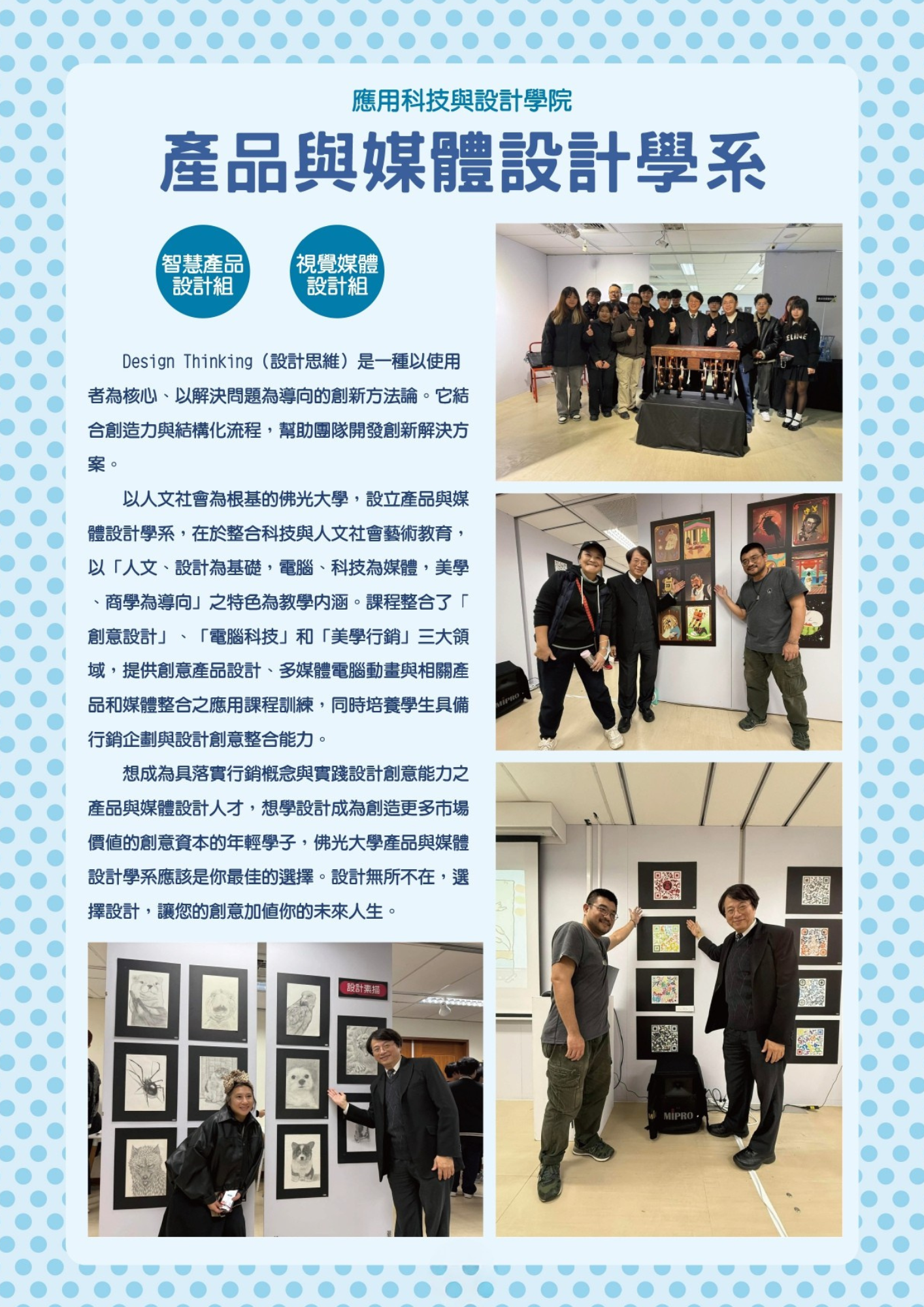 與產品與媒體設計學系聯繫 學系位置:26247宜蘭縣礁溪鄉林美村林尾路160號 雲慧樓312室 TEL:886-3-9871000 轉 25301 FAX:886-3-9871033 EMAIL:sfchung@mail.fgu.edu.tw